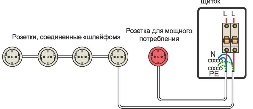 A conexão dos produtos de acordo com o esquema "estrela" pressupõe a conexão direta com a caixa de junção. Além disso, cada elemento recebe seus próprios fios, para que seja possível conectar com segurança equipamentos como um computador.