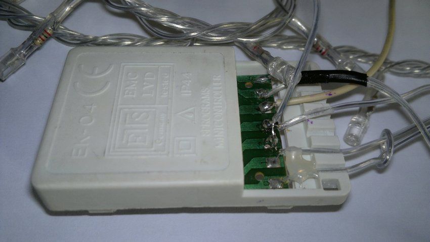 Se a causa da avaria não foi encontrada na unidade de controle, isso indica que está oculta no fio comum. O fato é que para guirlandas de LED, ao contrário das convencionais, é usada uma conexão paralela, o que elimina a probabilidade de um mau funcionamento da guirlanda devido à queima de um elemento. Portanto, sua tarefa é verificar o fio comum em busca de danos, mordidas, etc.