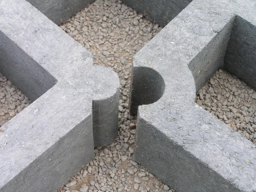 Essa grade é representada por um bloco de concreto estampado. A estampagem é realizada por prensagem vibratória ou fundição. As dimensões das células da geogrelha de concreto são 60x40x10 mm. Os orifícios podem ser quadrados ou em forma de diamante. A estrutura é instalada no solo em uma profundidade rasa. A drenagem é colocada sob ele, o que protege o solo da umidade excessiva.
