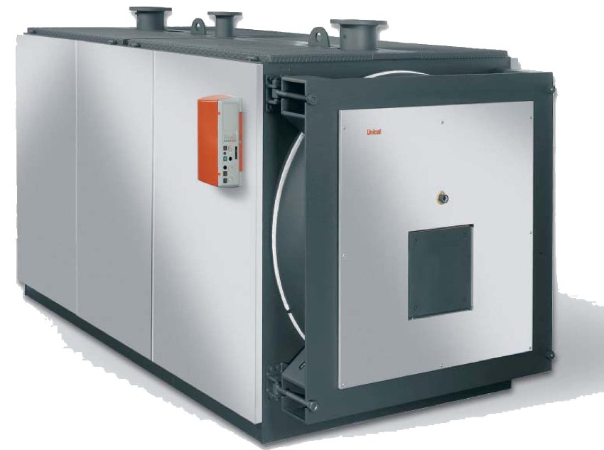 Producătorul italian Unical produce cazane cu o capacitate de 35-1100 kW. Un focar cilindric cu fundul gol are o memorie de inversiune. Dispozitivul are trei conducte de gaz de bloc cazan. Datorită torței scurte, se asigură un transfer de căldură de înaltă calitate, iar nivelul de convecție este crescut.