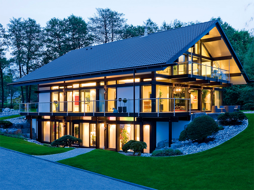 Important! Principala caracteristică a caselor construite folosind tehnologia germană este o amenajare gratuită cu posibilitatea de a proiecta camere mari.