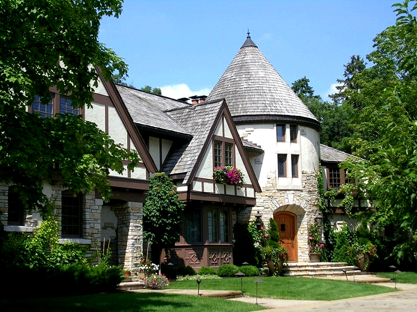 Este recomandat să decorați o casă în stilul unei case cu jumătate de lemn pe o fațadă cu o suprafață mare, deoarece este aproape imposibil să dezvăluiți esența și demnitatea designului, folosindu-l pe o casă mică. Acum tehnologiile de construcție sunt la un nivel mai înalt decât atunci când au apărut primele astfel de case. Puteți accelera procesul de construire a unei clădiri folosind panouri prefabricate, plăci de polipropilenă.