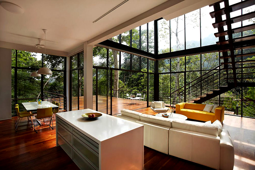 - O mulțime de soare în interior. Trăsăturile caracteristice ale designului permit amplasarea ferestrelor panoramice mari, în urma cărora toate încăperile sunt iluminate de razele soarelui.
