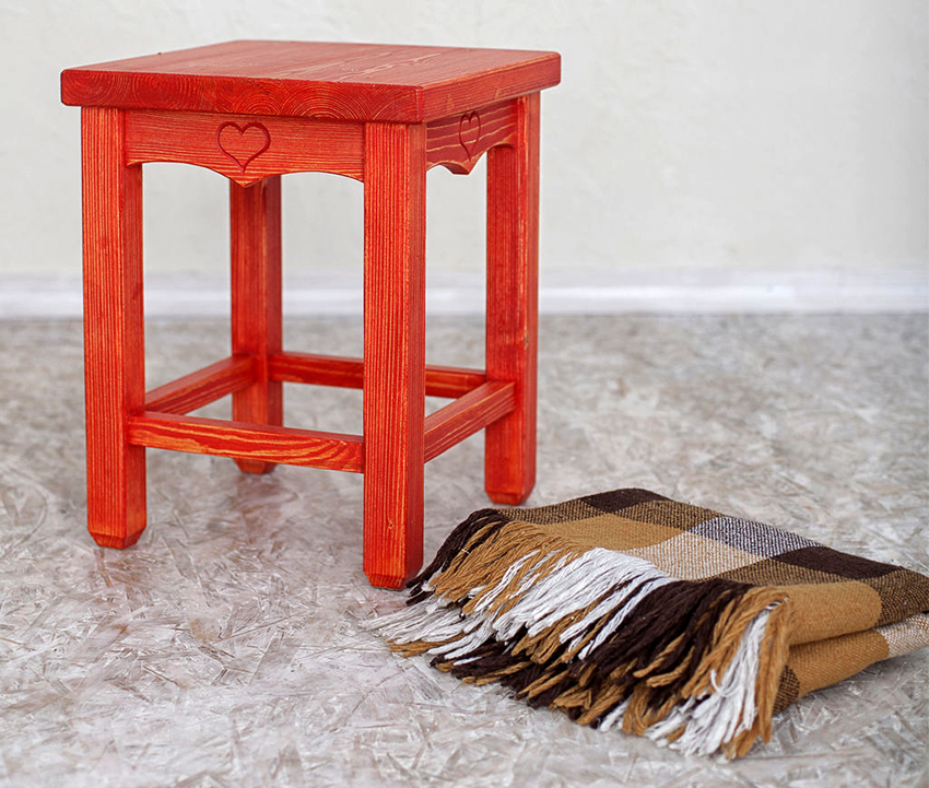 Najjednoduchším výrobným produktom je stolička, to znamená stolička bez operadla s tvrdým alebo mäkkým sedadlom. Na internete je veľa fotografií s výkresmi a pokynmi, ktoré vám pomôžu pochopiť proces vytvárania stolice.