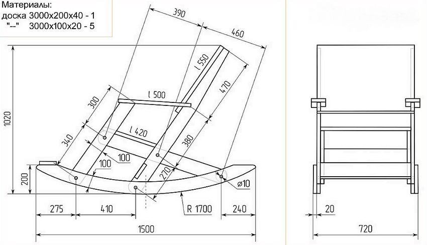 Hojdacie kreslo na drevo vyrobené vlastnými rukami: návrhové výkresy a potrebné materiály