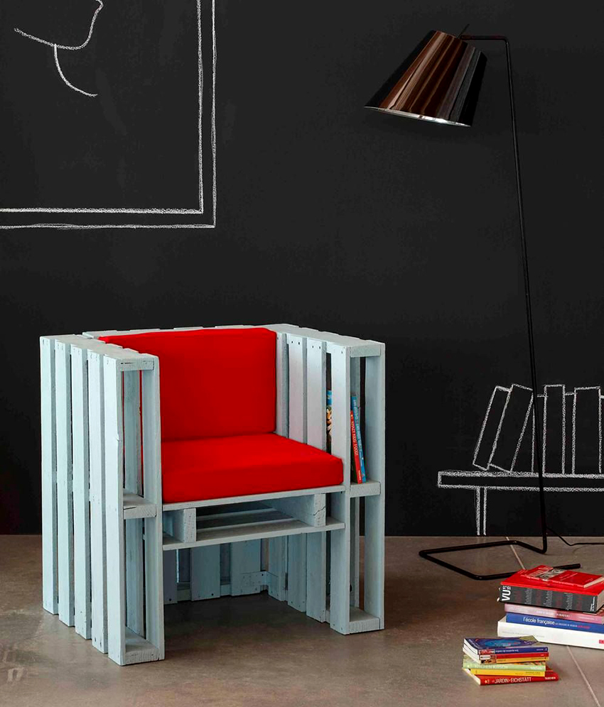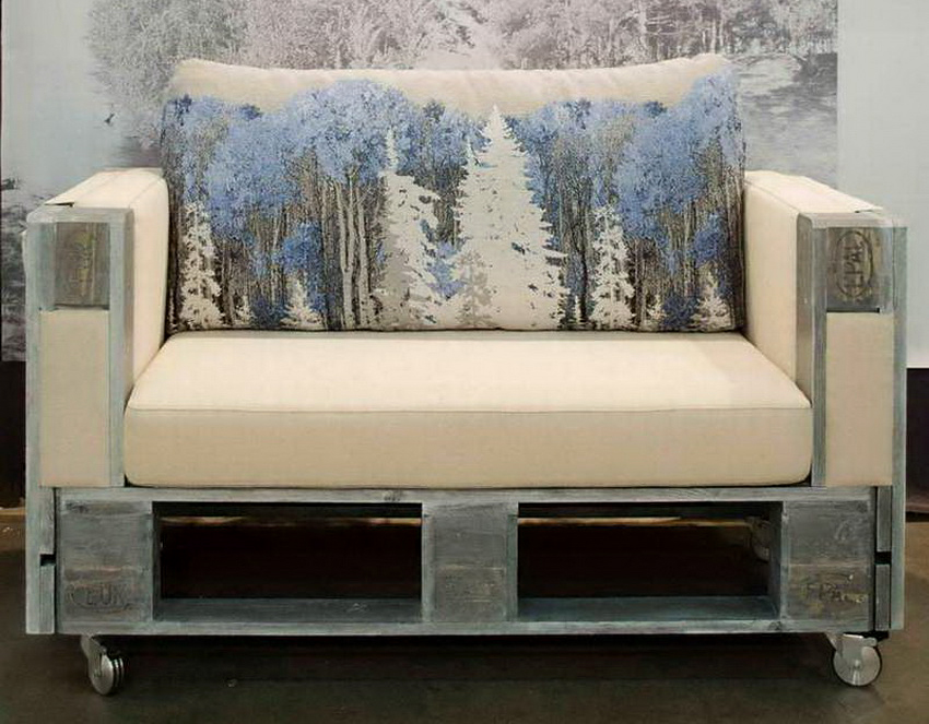 Drevené palety sú hotové diely, ktoré je potrebné spracovať a spojiť do jednej štruktúry. Z nich je celkom ľahké postaviť stoličku, pohovku a dokonca aj stôl. Môžete namaľovať hotovú štruktúru, prehodiť cez ňu prikrývku, pár vankúšov alebo zvoliť iný dizajn, ktorý sa bude harmonicky kombinovať s dizajnom interiéru.