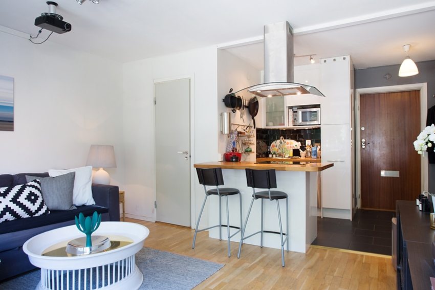 Vystačíte si s jedným typom náteru na celú plochu štúdia, avšak dlažba v miestnosti bude pôsobiť celkom nevhodne a nie každý rád dáva do kuchyne laminát. Môžem dať laminát v kuchyni Je to samostatná otázka, ktorej sa budeme venovať nižšie.