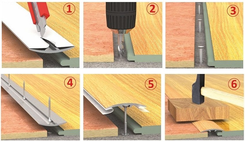 Užitočná rada! Aby sa zakryl rozdiel vo výške povlakov, odporúča sa použiť zaoblené prahy. Robia to lepšie ako ostatní.