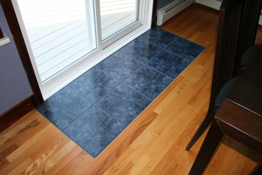 Kombinované kuchynská podlaha: kuchynský kút je vydláždený, jedálenský kút - laminát
