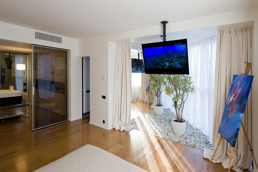 Televízor je samozrejme možné vždy nainštalovať na nočný stolík alebo v prípade plochej obrazovky vyrobiť súčasť nábytkovej steny. Ak máš záujem, ako zavesiť televízor na stenu bez zátvoriek, potom na internete existuje obrovské množstvo možností pre akýkoľvek typ interiéru. Možnosť s konzolou je dobrá, pretože okamžite poskytuje veľké množstvo výhod: