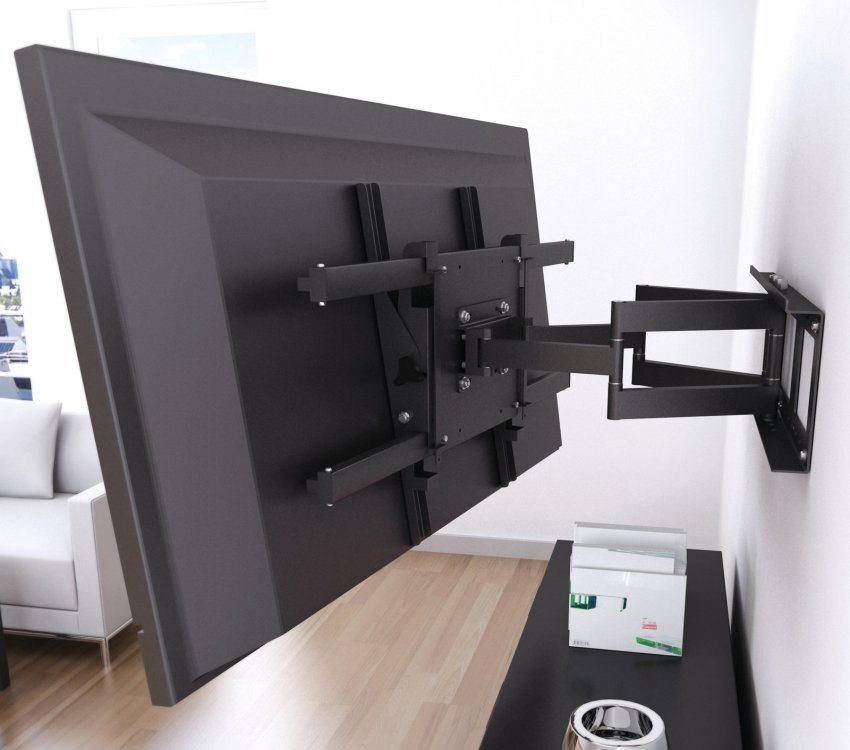 Naklonenie-otočenie Držiak televízora - umožňuje nakloniť zariadenie vertikálne a horizontálne, aby bolo sledovanie čo najpohodlnejšie z ktoréhokoľvek miesta v miestnosti. Vzhľadom na zložitosť dizajnu je to dosť drahé.Medzi nevýhody patrí veľké množstvo voľného miesta, ktoré tento model zaberá.