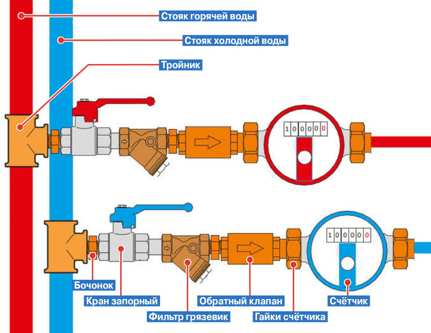 Schéma inštalácie zariadenia na meranie vody je nevyhnutným momentom počas prípravy na inštaláciu zariadenia