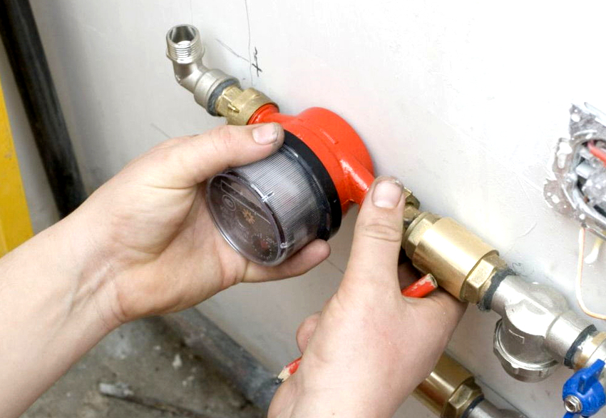 Ďalším krokom pri inštalácii merača je spájkovanie spojovacieho kusu s prvým koncom potrubia. Potom sa na ňu naskrutkuje čistiaci filter. Ak je v konštrukcii potrubia ventil, môže byť na ňom nainštalovaný čistiaci prvok. Ďalej je spojovacia armatúra namontovaná na okraj druhej plastovej rúry. Potom sa spojovacie prvky naskrutkujú, namontujú sa gumové tesnenia.
