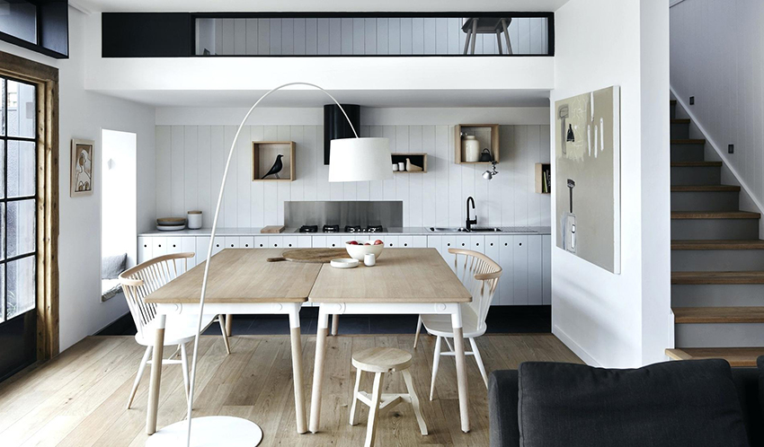 - สไตล์อีโคหมายถึงการผสมผสานระหว่างสีขาวกับโทนสีเขียวอ่อนหรือสีเบจ เฟอร์นิเจอร์ในห้องรับประทานอาหารที่ทำจากไม้และพืชในบ้านทำหน้าที่เป็นส่วนเสริม