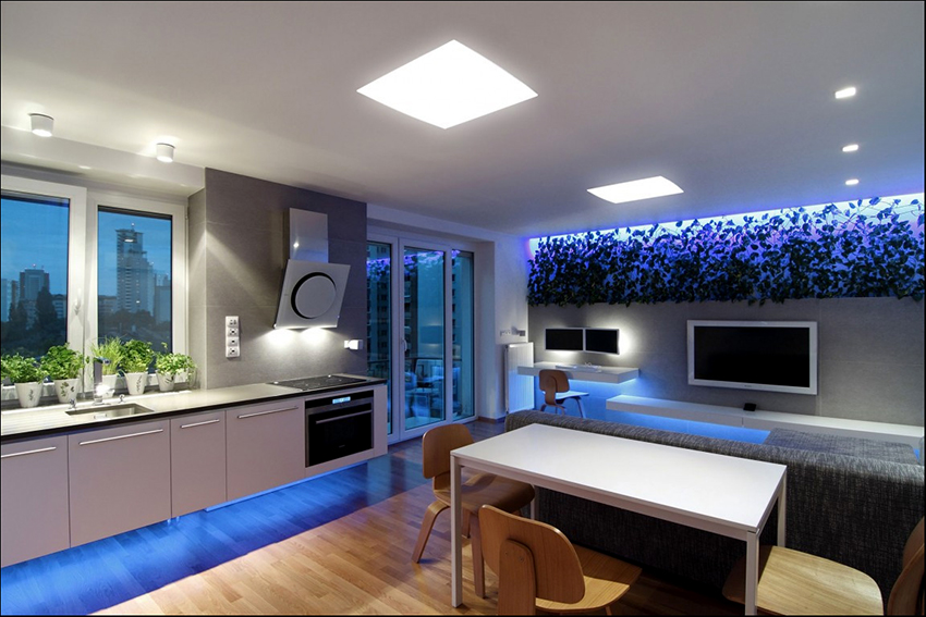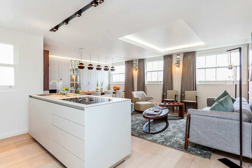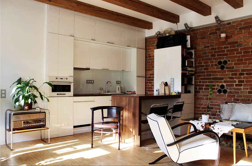 การใช้อุปกรณ์ประเภทเดียวกันในห้องต่างๆทำให้การตกแต่งภายในกลมกลืนกัน: ในทางเดินห้องครัวและห้องนั่งเล่น องค์ประกอบการตกแต่งดังกล่าวไม่ควรเด่นชัด แต่สามารถรวมห้องต่างๆของอพาร์ตเมนต์ได้อย่างลงตัว