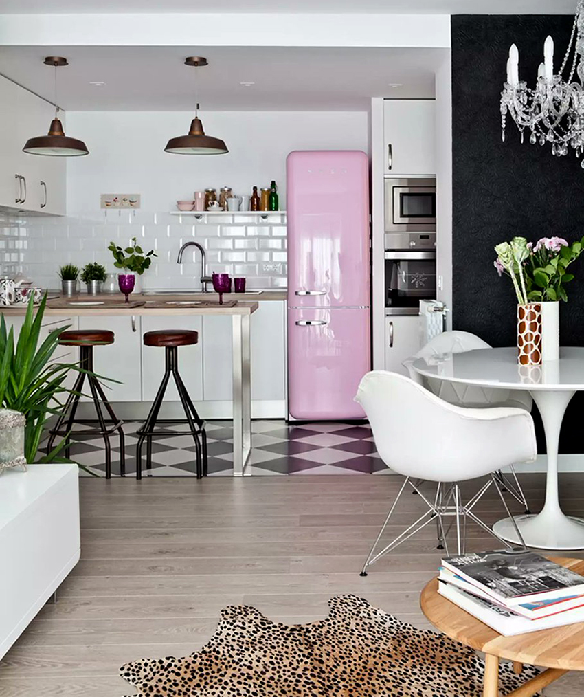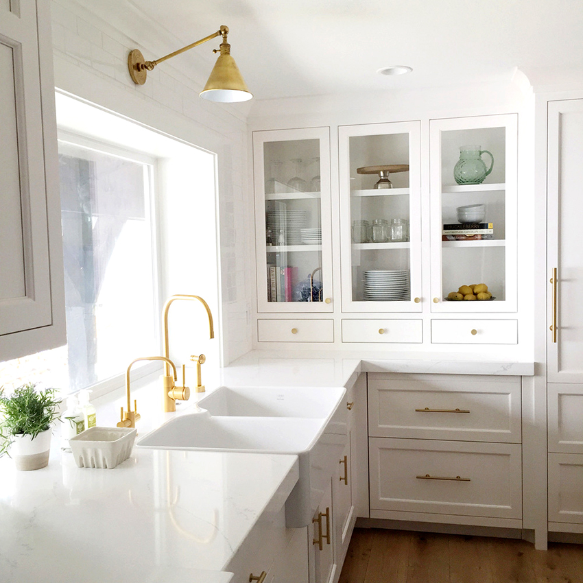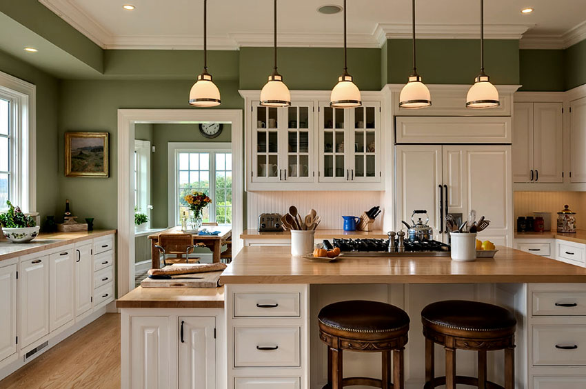 - มุกและเฉดสีทุกประเภท (จากสีเหลืองไปจนถึงสีชมพู) จะดูดีบนผนังและรวมกับเฟอร์นิเจอร์ครัวสีขาว