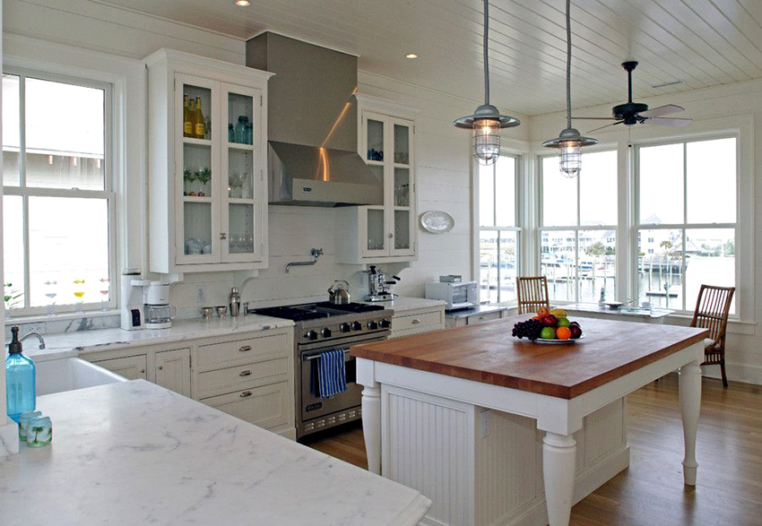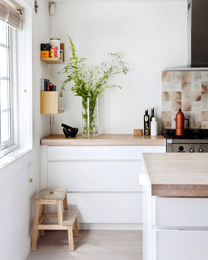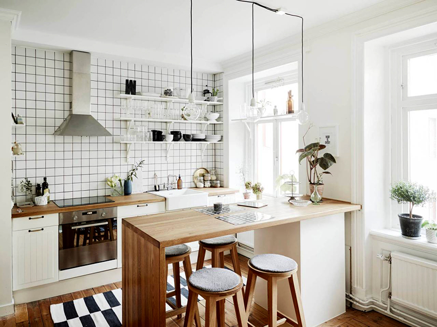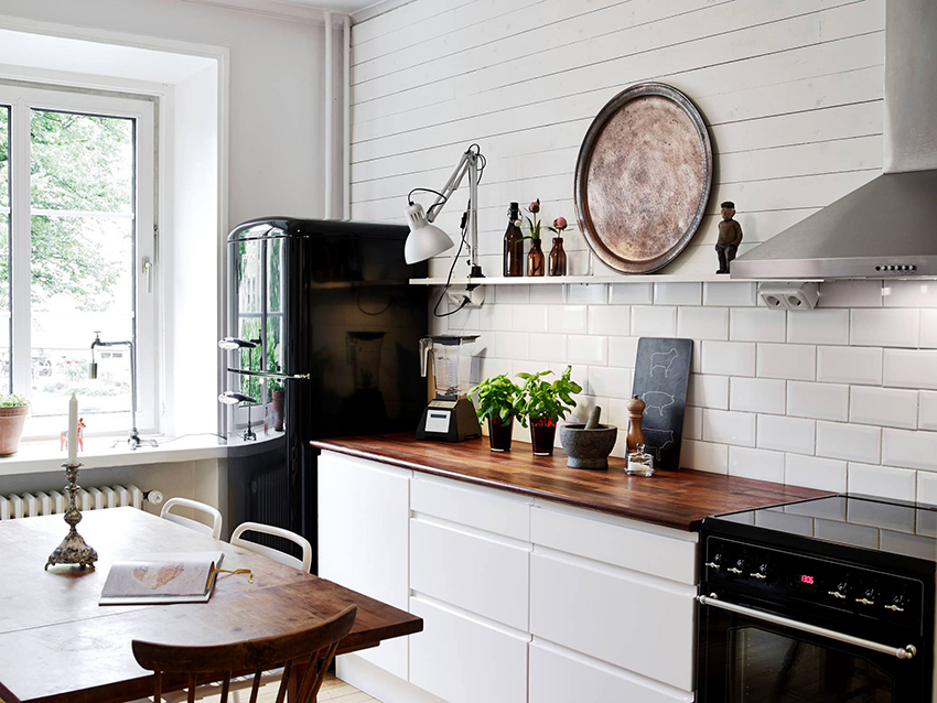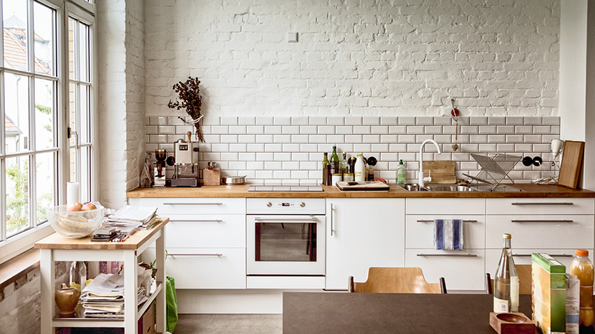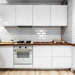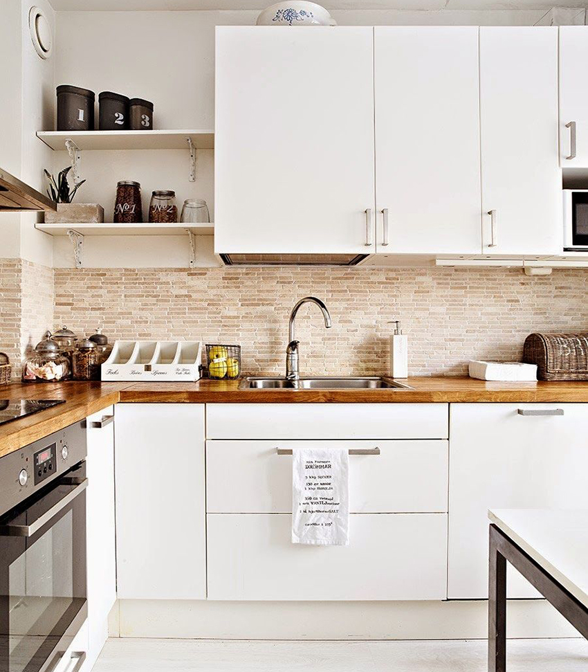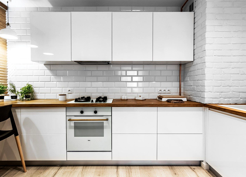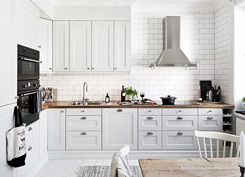ห้องครัวสีขาวพร้อมเคาน์เตอร์ไม้: เลือกใช้วัสดุ