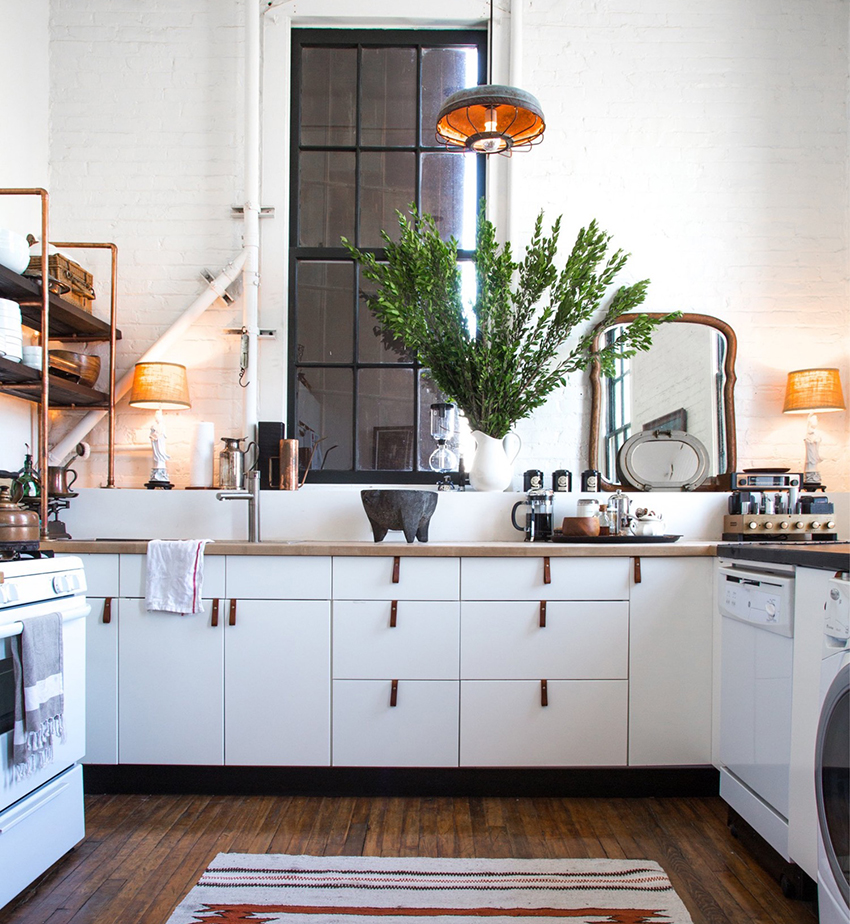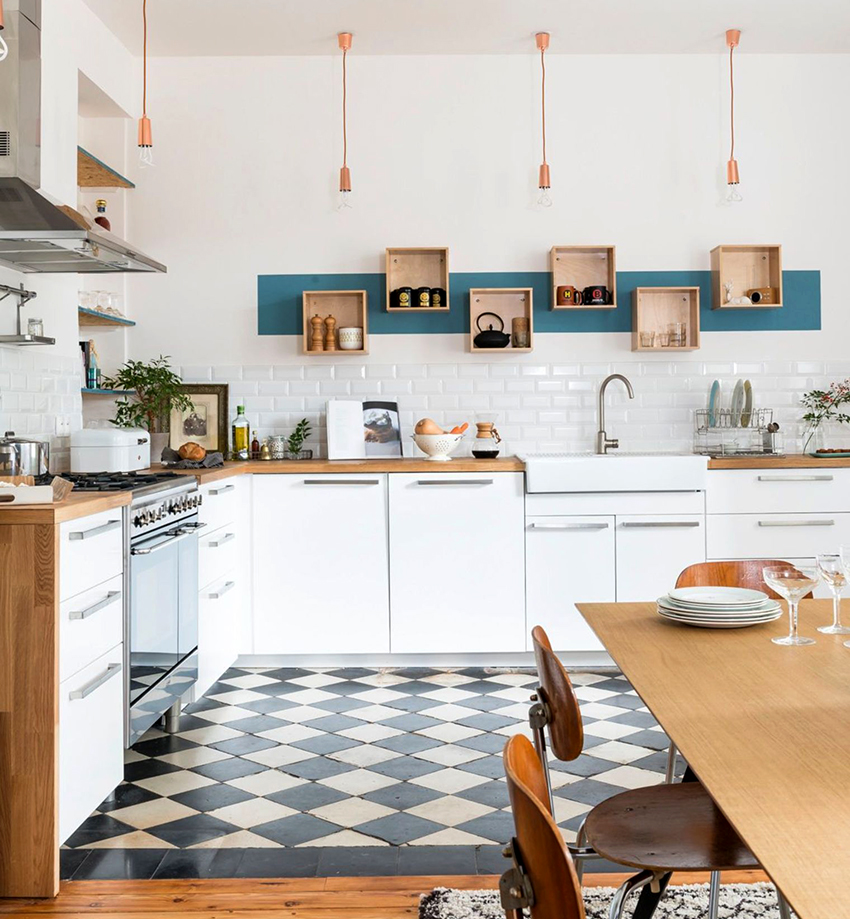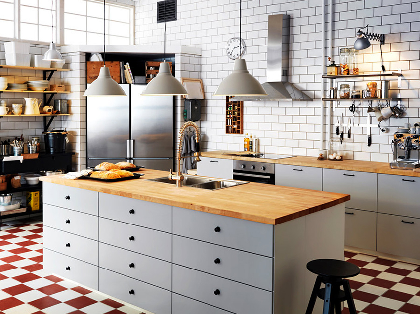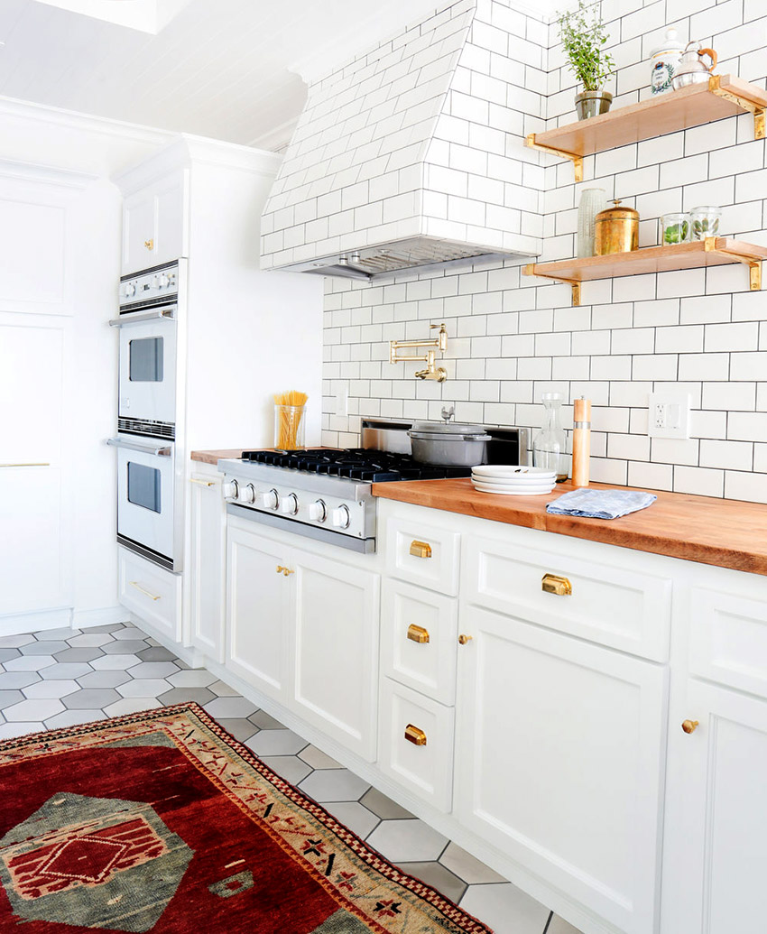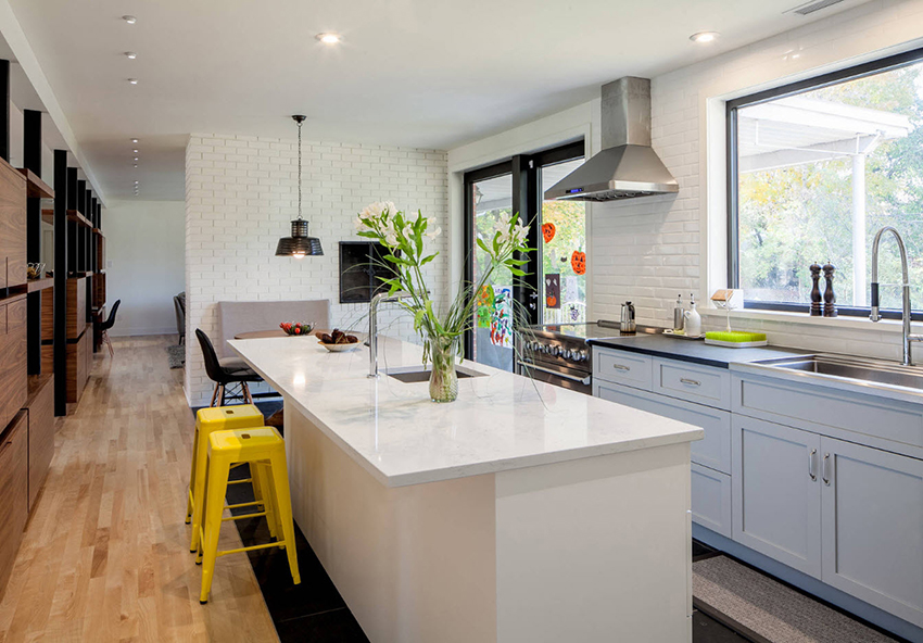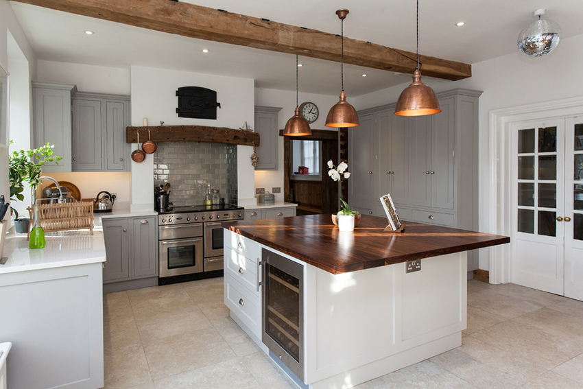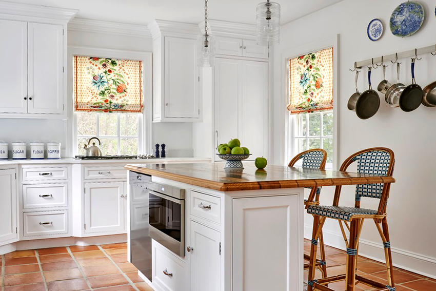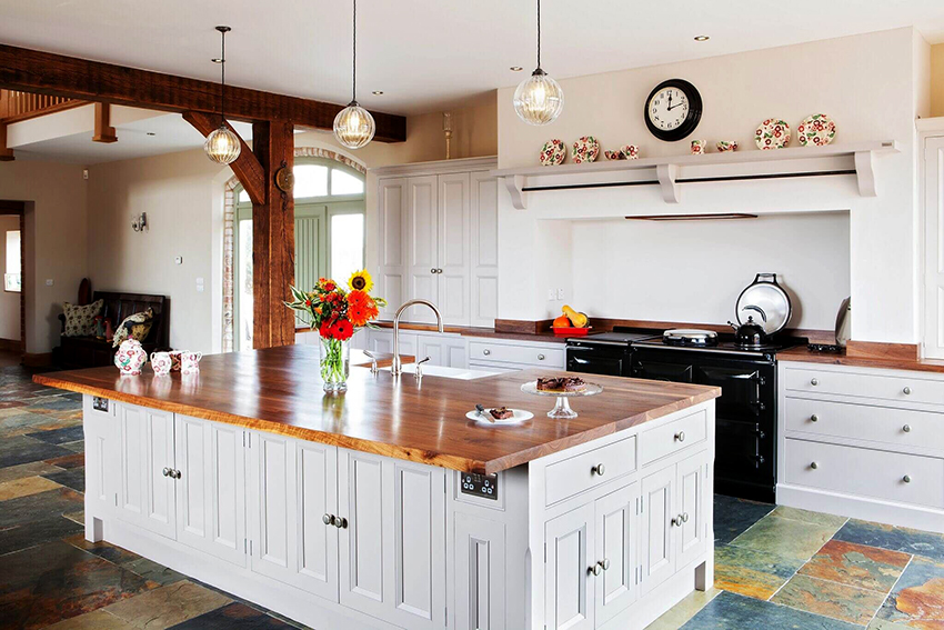 ห้องครัวสีขาวพร้อมเคาน์เตอร์ไม้: เลือกใช้วัสดุ