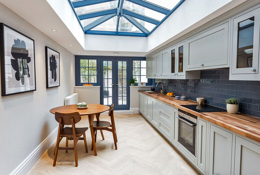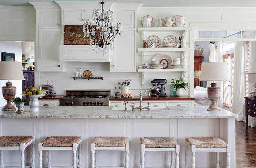 - Provence เป็นสไตล์ที่ต้องมีเฟอร์นิเจอร์สีขาว การตกแต่ง Craquelure และประตูกระจกที่มีการผูกไม้ช่วยเพิ่มความสง่างามและสีสันให้กับห้องครัว