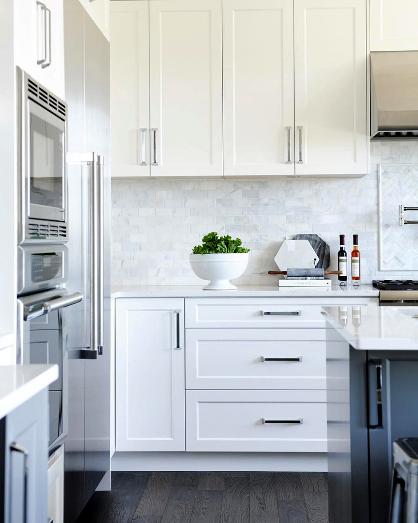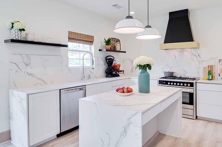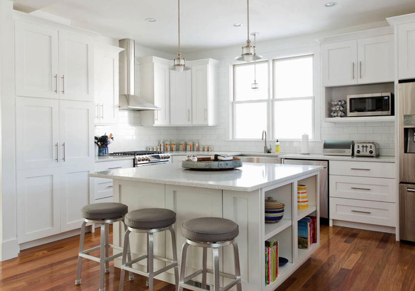 - 3 ห้องครัวสีขาวพร้อมโต๊ะทำงานสีขาวและ Backsplash สีขาว: การผสมผสานสำหรับทุกรสนิยม