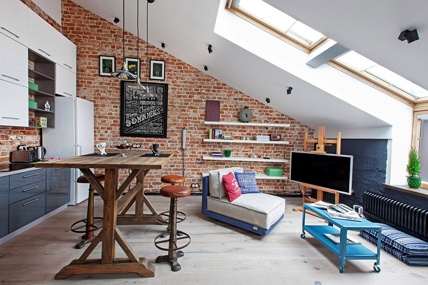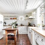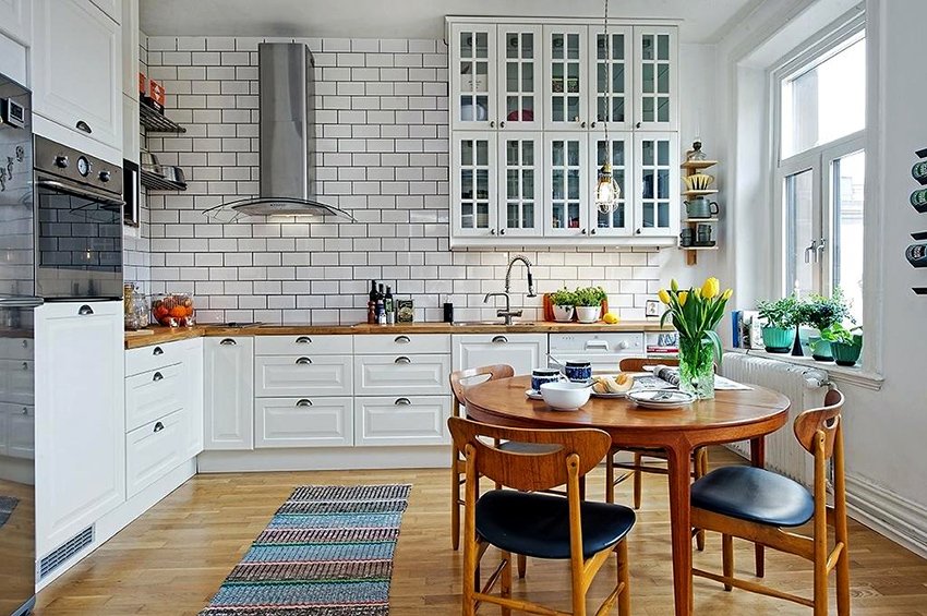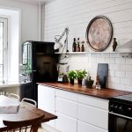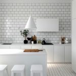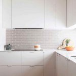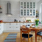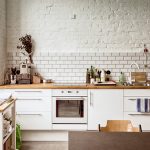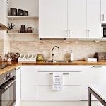 ปัจจุบันกระเบื้องที่เลียนแบบอิฐสีขาวเป็นที่นิยมมาก ภายในห้องครัวการคัดลอกงานก่ออิฐเข้ากันได้ดีกับทุกสไตล์ ทางออกที่น่าสนใจและเป็นประโยชน์ในทางปฏิบัติในทุกรูปแบบคือผ้ากันเปื้อนโมเสคสีขาว