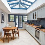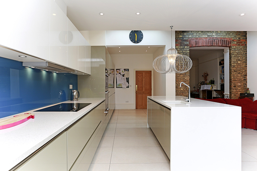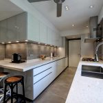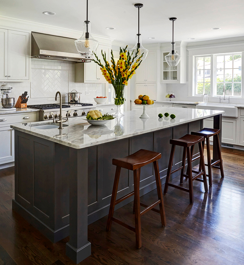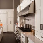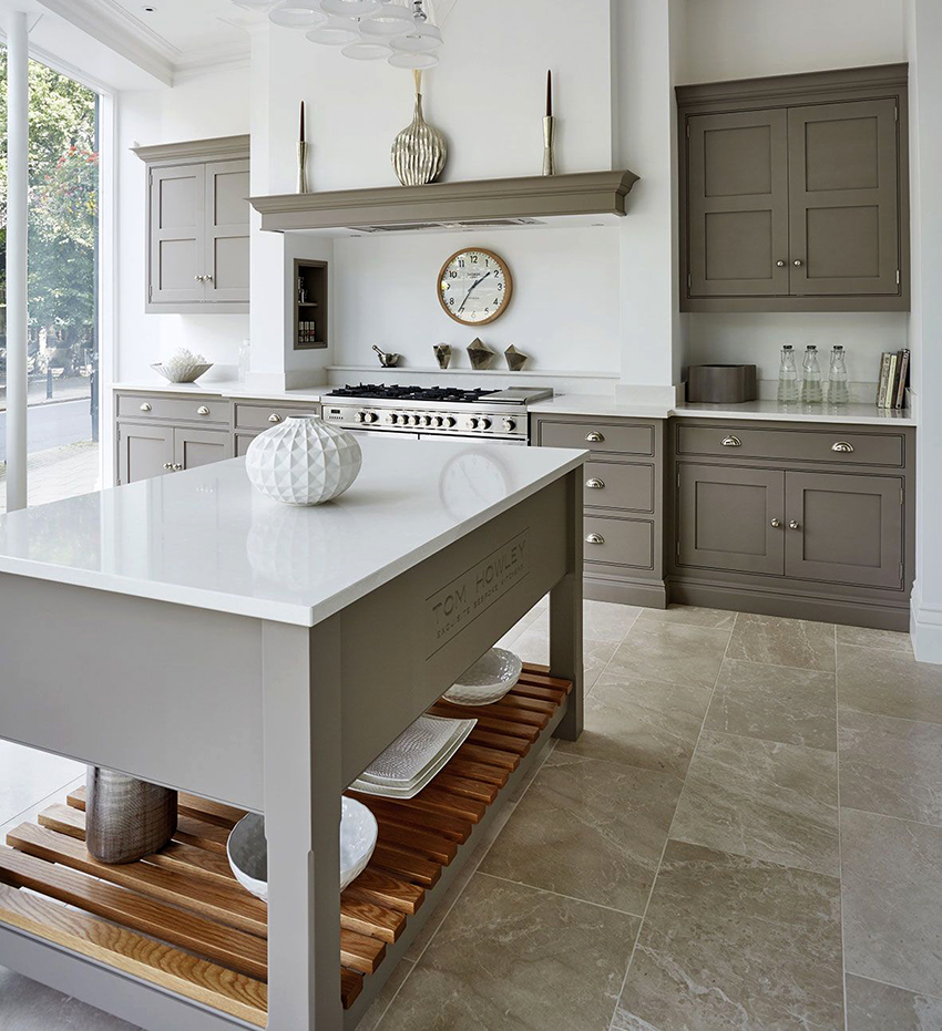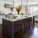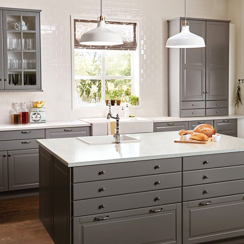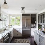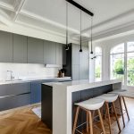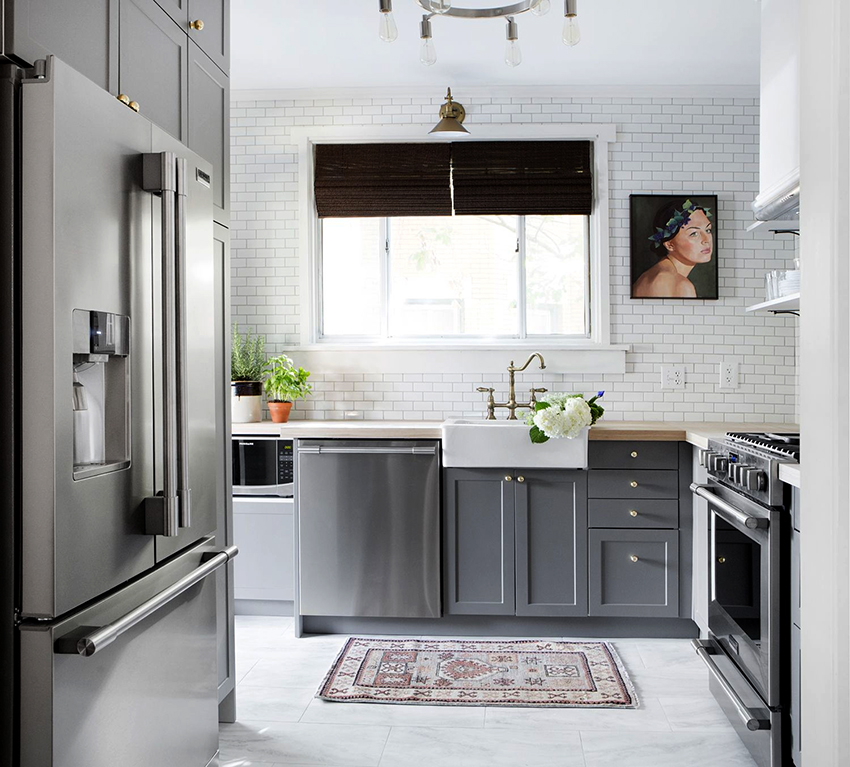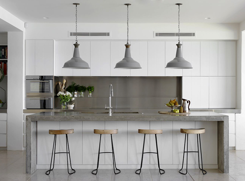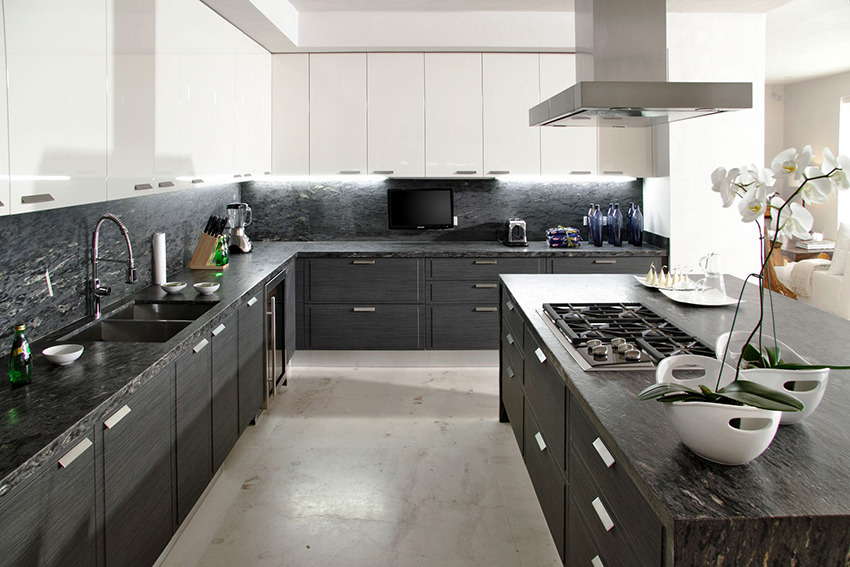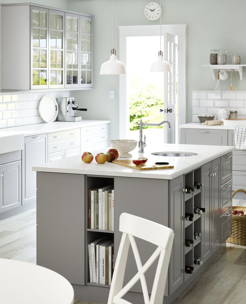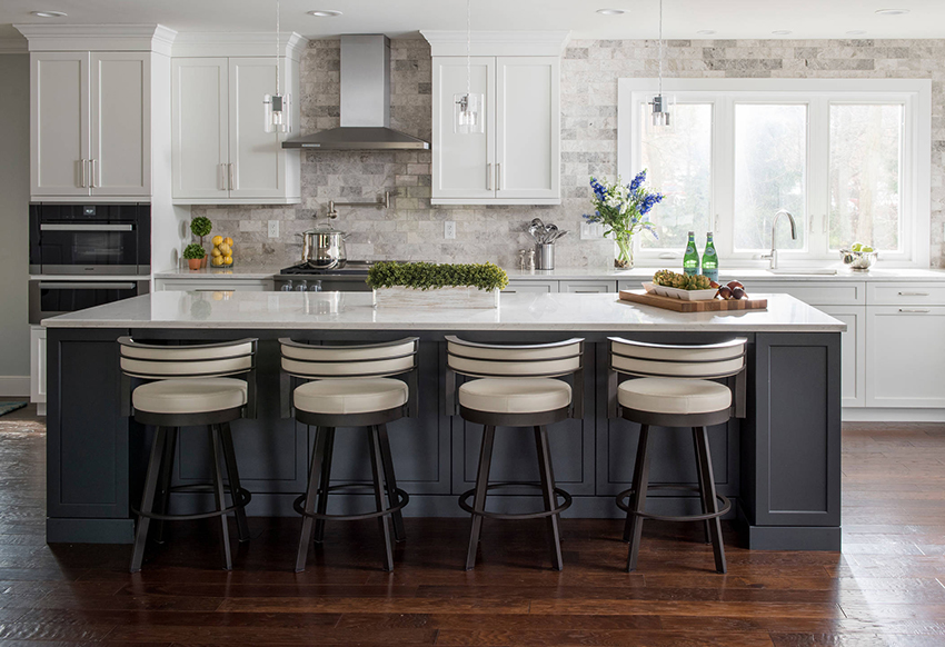 การผสมสองสีที่ได้รับความนิยมมากที่สุดคือสีขาวด้านบนและด้านล่างสีเทา การผสมผสานนี้มีข้อดีหลายประการที่ไม่อาจโต้แย้งได้เนื่องจากด้านล่างของห้องครัวมีความอ่อนไหวต่อสิ่งสกปรกมากกว่าซึ่งจะไม่โดดเด่นกับพื้นหลังสีเทา นอกจากนี้สีขาวจะช่วยให้ด้านบนดูกว้างขวางส่งผลให้ห้องครัวดูไม่เทอะทะราวกับว่าด้านบนเป็นสีเข้ม