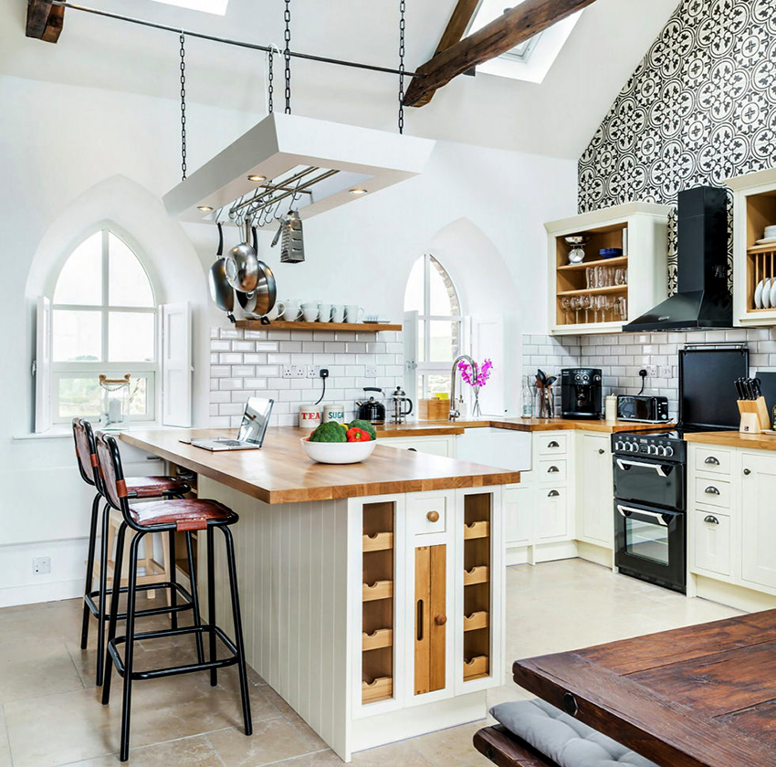 เมื่อสร้างการตกแต่งภายในสไตล์คันทรีกับพื้นหลังของตู้เก่าควรใช้เฉดสีอื่น ๆ ส่วนใหญ่มักเป็นกระเบื้องสีขาวที่มีลวดลายหลากหลาย ผ้ากันเปื้อนและท็อปโต๊ะไม้สีอ่อนก็เหมาะสมเช่นกัน กระเบื้องโมเสคเหมาะที่สุดสำหรับการออกแบบสไตล์โพรวองซ์แบบชนบทหรือเมดิเตอร์เรเนียน