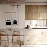 ห้องครัวสีขาวพร้อมไม้: ความงดงามแบบขาวดำในการตกแต่งภายใน