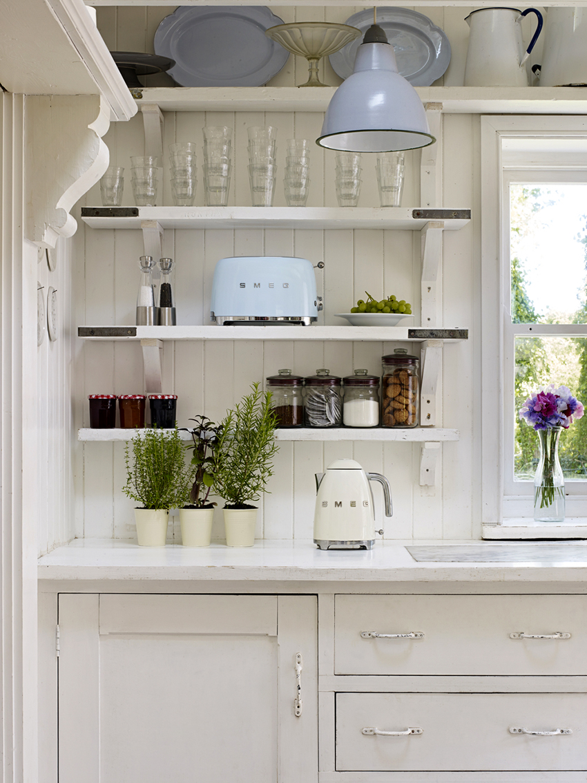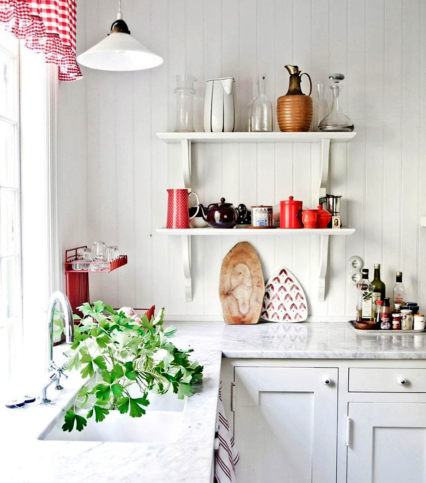- เฉดสีขาวเหมาะสำหรับการสะท้อนแสงดังนั้นสีนี้จึงเหมาะสำหรับห้องครัวที่ตั้งอยู่บนชั้นล่างที่มีร่มเงาหรือทางด้านทิศเหนือของบ้าน