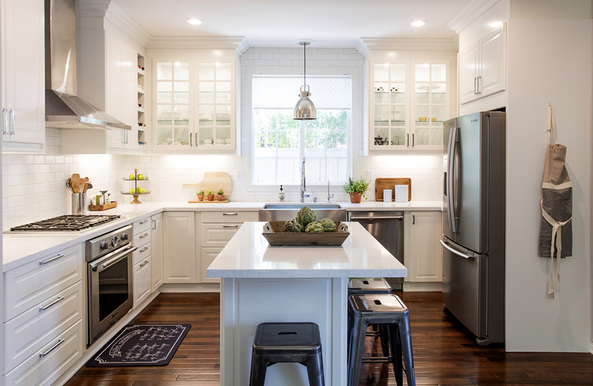 - 7 ห้องครัวสีขาวพร้อมเคาน์เตอร์สีขาว: อุปกรณ์และอุปกรณ์เสริมที่มีสไตล์