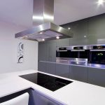 ความเย็นของห้องครัวในสีขาวและสีเทาสามารถทำให้อ่อนลงได้ด้วยความช่วยเหลือของอุปกรณ์เสริมเพิ่มเติมในรูปแบบของแจกันเซรามิกเครื่องแก้วและพื้นผิวโลหะบนอ่างล้างจานเตาและเครื่องใช้ เมื่อเลือกวัสดุปูพื้นในห้องครัวควรเลือกวัสดุที่มีสีของไม้สีอ่อน อาจเป็นกระเบื้องเสื่อน้ำมันหรือลามิเนตที่มีรูปแบบที่เหมาะสม กลุ่มรับประทานอาหารไม้สีอ่อนก็เป็นส่วนเสริมที่ดีเช่นกัน