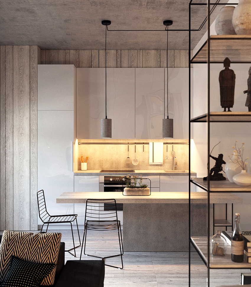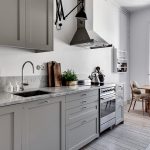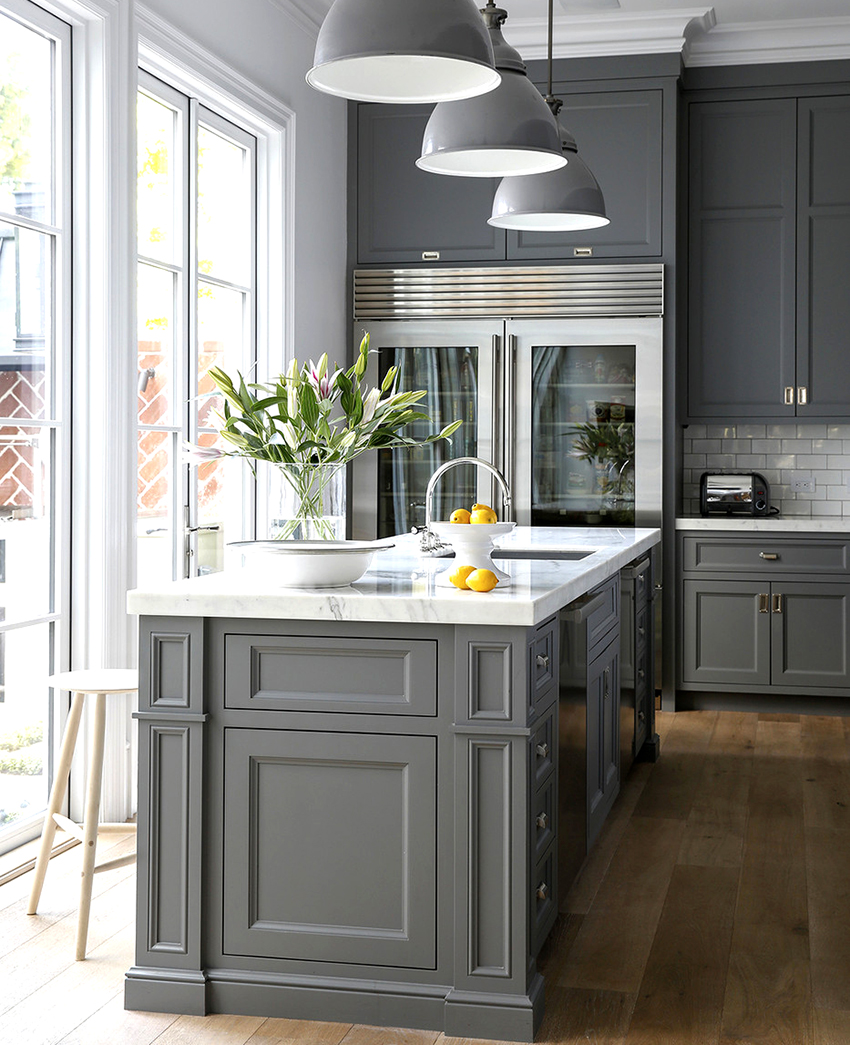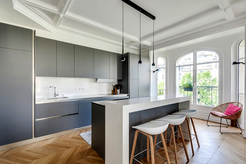 คำแนะนำที่เป็นประโยชน์! ควรใช้ความระมัดระวังในการใช้สีเทาเข้มในการจัดห้องครัวเนื่องจากจำนวนมากอาจทำให้หดหู่ได้โดยเฉพาะในห้องที่มีแสงสลัว