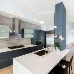 การรวมกันของโทนสีและการเลือกสีสำหรับเคาน์เตอร์สำหรับห้องครัวสีขาว