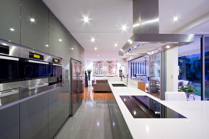 ความอเนกประสงค์ของห้องครัวสีขาว: การออกแบบตกแต่งภายในในสไตล์โมเดิร์นที่แตกต่างกัน