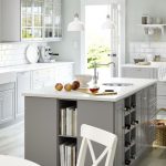 ภาพถ่ายของห้องครัวสีเทา - ขาวในการตกแต่งภายในแสดงให้เห็นถึงความสำเร็จของการผสมผสานที่เน้นเสียงโดยที่สีใดสีหนึ่งถูกใช้อย่างกระตือรือร้นมากขึ้นและสีที่สองมีอยู่ในบางองค์ประกอบ เกาะที่เน้นเสียงเป็นอีกวิธีที่ทันสมัยในการผสมผสานโทนสีในห้องครัวสีขาวและสีเทา ภาพถ่ายแสดงตัวอย่างของการออกแบบเกาะสีขาวกับพื้นหลังของห้องครัวสีเทาและในทางกลับกัน