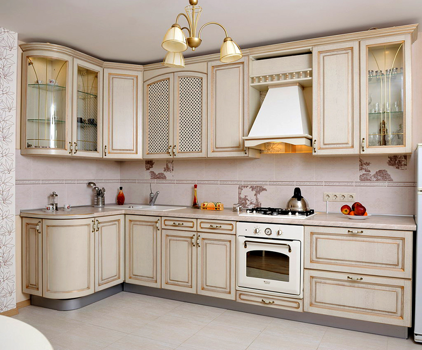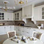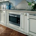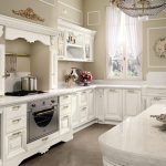 - สำหรับคลาสสิกเฟอร์นิเจอร์รูปแบบเข้มงวดที่มีเม็ดมีดนูนเป็นลักษณะเฉพาะ องค์ประกอบบังคับคือเครือเถาและงานแกะสลักที่สวยงาม บ่อยครั้งที่นี่เป็นห้องครัวสีขาวที่มีคราบสกปรกตู้แขวนมีประตูกระจกนม