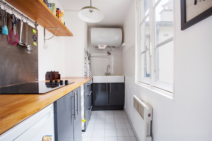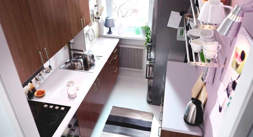 จะปรับปรุงห้องครัวคู่ขนานได้อย่างไร? ตัวเลือกนี้คล้ายกับวิธีการจัดเรียงวัตถุรูปตัวยู แต่ในกรณีนี้เฟอร์นิเจอร์จะตั้งอยู่ตามผนังคู่ขนานสองชั้นเท่านั้น อย่างไรก็ตามมีที่ว่างอีกเล็กน้อยที่จะหันกลับมา