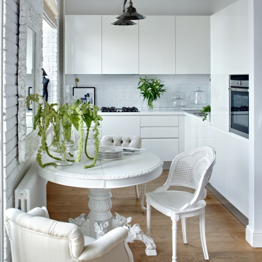 สำหรับโครงการห้องครัวขนาดเล็กการตกแต่งภายในแบบเบา ๆ จะเหมาะที่สุดวิธีแก้ปัญหาดังกล่าวจะเพิ่มพื้นที่ให้มองเห็นและดูดีทีเดียว นอกจากนี้เฟอร์นิเจอร์ที่มีสีผิดปกติไม่จำเป็นต้องสั่งทำเนื่องจากการหาชุดหูฟังที่มีโทนสีอ่อนและอบอุ่นลดราคาได้ง่ายกว่ามาก