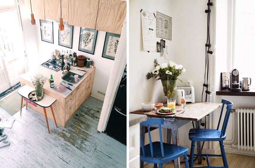 เฟอร์นิเจอร์พับหรือพับได้จะเป็นทางออกที่ดีสำหรับการปรับปรุงห้องครัวขนาดเล็กราคาไม่แพง คุณสามารถใช้มันได้หากจำเป็นและเวลาที่เหลือจะไม่ใช้พื้นที่