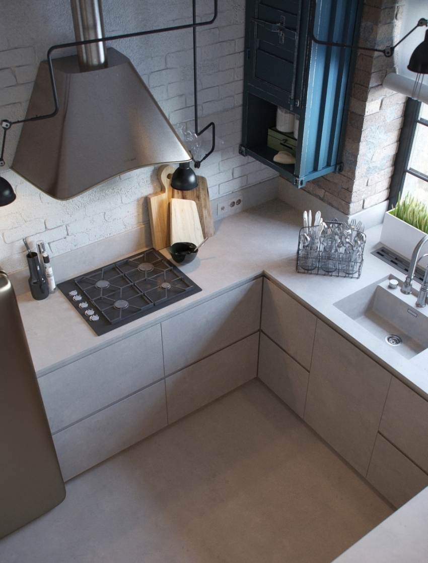 รูปแบบของห้องครัวใน Khrushchev อาจมีรูปแบบรูปตัวยู แต่ตัวเลือกนี้ไม่ธรรมดา เหมาะสำหรับผู้ที่คุ้นเคยกับการอยู่ในครัวคนเดียวเท่านั้นเพราะจะมีพื้นที่ไม่เพียงพอสำหรับหลาย ๆ คน เพื่อให้พื้นที่ว่างกว้างขึ้นคุณควรเลือกเฟอร์นิเจอร์ที่เล็กที่สุดจากนั้นวิธีแก้ปัญหาจะประสบความสำเร็จ