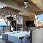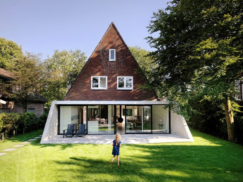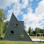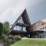 เพื่อความเรียบง่ายทั้งหมดอาคารรูปสามเหลี่ยมมีรูปลักษณ์ดั้งเดิมรูปแบบที่พูดน้อยและการแตกของผนังด้านบนเน้นความแปลกใหม่และความสะดวกสบาย