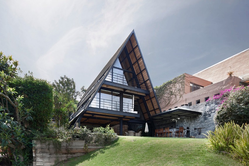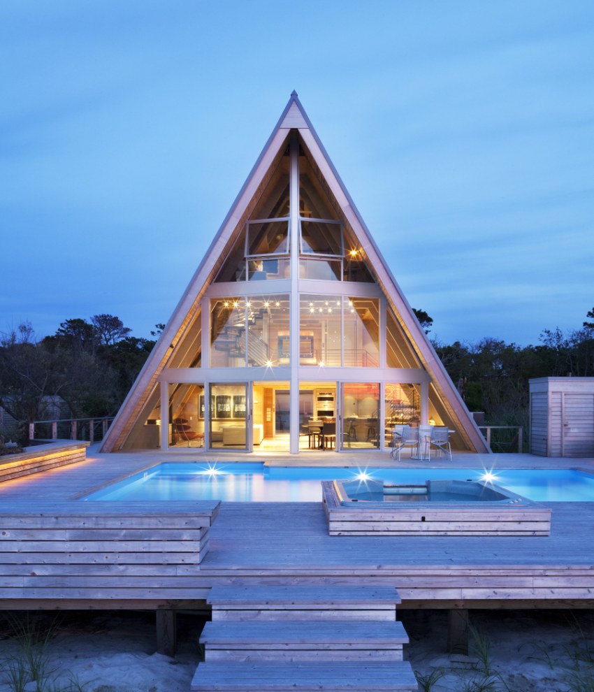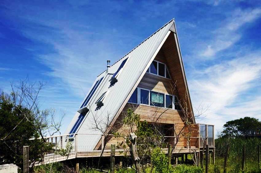 อาคารรูปสามเหลี่ยม: รูปกระท่อมข้อดีและข้อเสีย