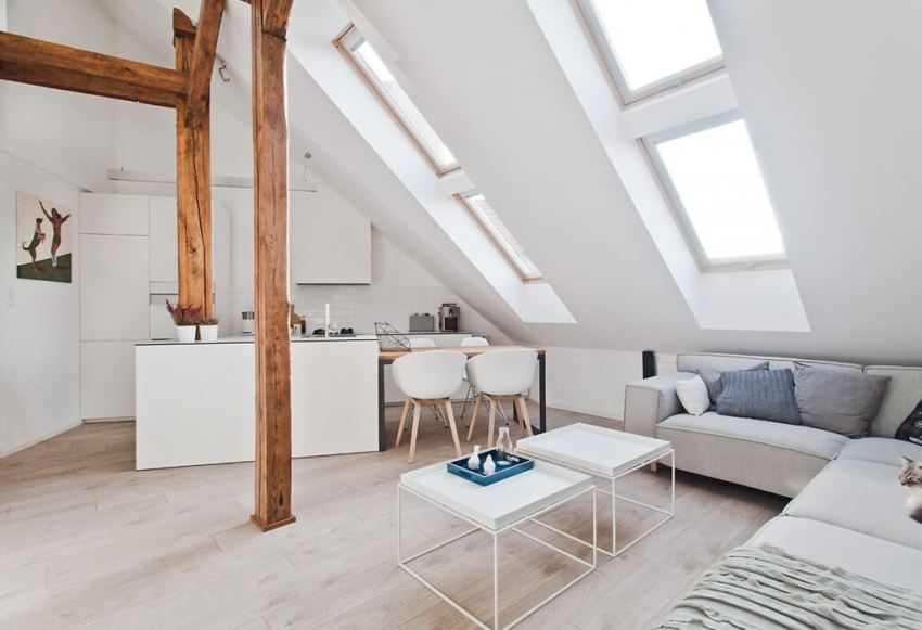 ผนังที่ลาดเอียงต้องใช้วิธีพิเศษในการตกแต่งภายใน คุณจะต้องเลือกชิ้นส่วนของเฟอร์นิเจอร์อย่างระมัดระวังหรือแม้กระทั่งสั่งทำเนื่องจากการออกแบบมาตรฐานสามารถซ่อนเซนติเมตรที่มีประโยชน์ในห้องที่มีโครงร่างที่ผิดปกติได้