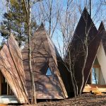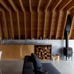 เนื่องจากอาคารรูปสามเหลี่ยมมีพื้นที่ภายในไม่มากนักเพื่อประหยัดพื้นที่ใช้สอยจึงนำเตาผิงและปล่องไฟออกไปนอกอาคาร ในภาพบ้านในป่าที่มีการออกแบบนี้ดูน่าประทับใจมาก แม้ว่าแนวทางนี้จะมีข้อเสียเนื่องจากส่วนสำคัญของความร้อนจะออกไปข้างนอก