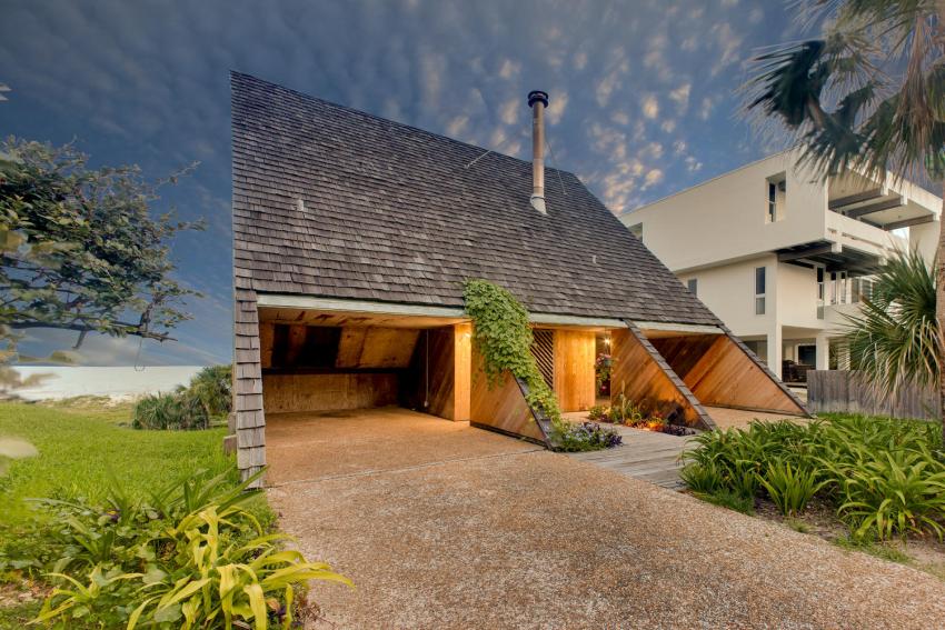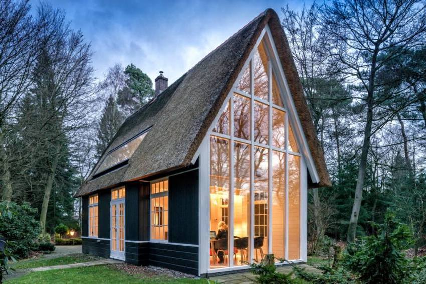 บ้านกระท่อมไม่ใช่เรื่องธรรมดาโดยทันทีที่โดดเด่นด้วยรูปลักษณ์ที่ไม่น่าสนใจจากอาคารหลายหลังในรูปแบบดั้งเดิมตามปกติ