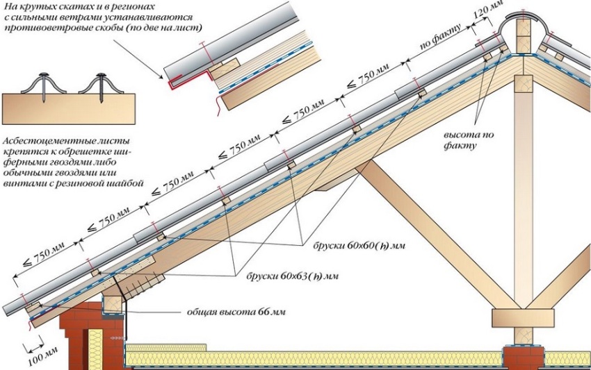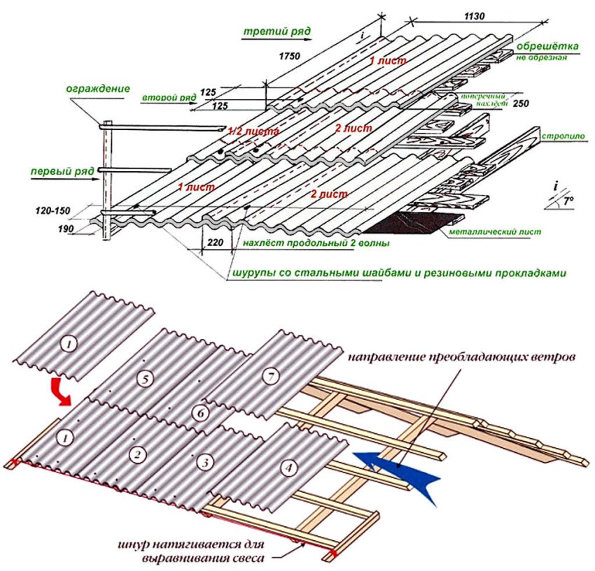 แผ่นกระดานชนวนจะใช้เป็นวัสดุมุงหลังคา งานติดตั้งเริ่มต้นด้วยการติดตั้งโครงสร้างไม้ระแนง ในการทำเช่นนี้ให้ใช้คานที่มีขนาดหน้าตัดเฉลี่ยแล้วยึดเข้ากับจันทัน องค์ประกอบไม้เหล่านี้ติดตั้งเพิ่มขึ้นทีละ 0.5 ม. หลังจากนั้นควรปล่อยคานออกนอกเฟรมที่อยู่ที่ขอบประมาณ 50 ซม. วัสดุมุงหลังคาควรกระจายไปทั่วกาบที่เกิดขึ้นและควรวางกระดานชนวนและยึดด้วยตะปู