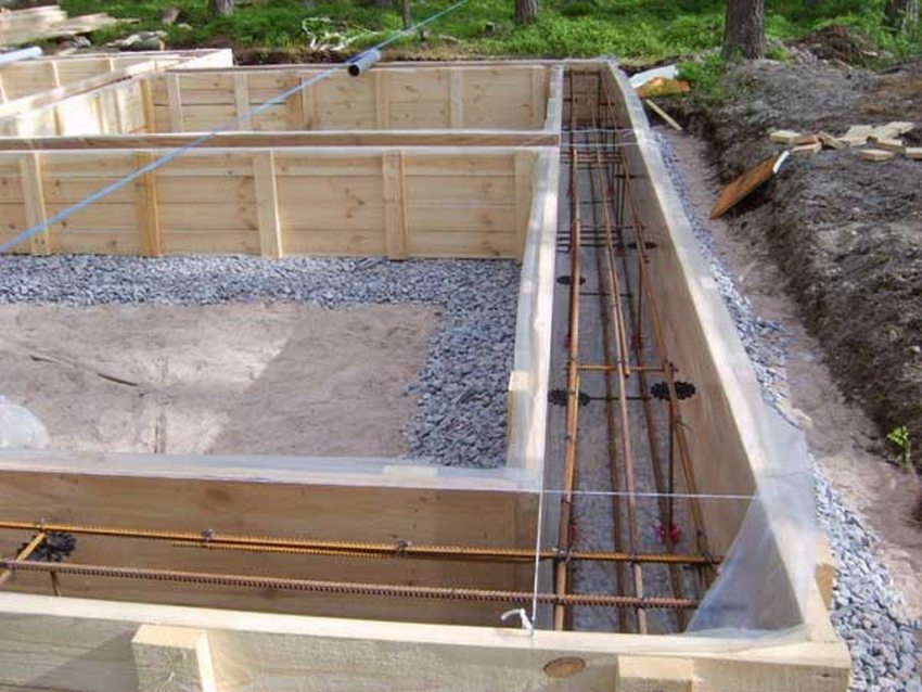เบาะทรายและกรวดก่อตัวที่ด้านล่างของร่องลึก ในกรณีนี้หินจะถูกวางลงและทรายจะถูกเทจากด้านบนไปที่ระดับล่างของการทำเครื่องหมาย ควรบีบวัสดุแต่ละชั้นอย่างระมัดระวัง ต้องติดตั้งแผงแบบหล่อตามร่องลึกแต่ละร่อง ส่วนบนของโครงสร้างนี้เชื่อมต่อด้วยไม้กระดาน ต้องทำเพื่อให้ระยะ 0.3 ม. เกิดขึ้นระหว่างผนัง