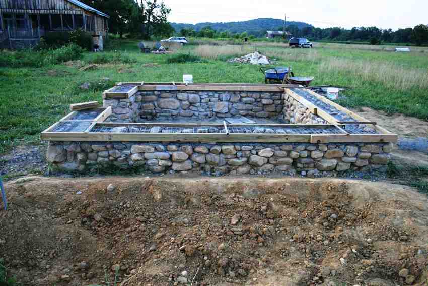 ถัดไปวางหินเศษหินหรืออิฐ สำหรับแถวแรกจะใช้หินกรวดขนาดใหญ่ พวกเขาจะวางแห้งและถูกบีบอัด จากนั้นคุณสามารถเติมตาได้ สำหรับสิ่งนี้ควรใช้ยี่ห้อ M100 จะดีกว่า แถวถัดไปจะถูกสร้างขึ้นเพื่อให้หินถูกปิดภาคเรียนเล็กน้อยในปูนที่ครอบคลุมการก่ออิฐก่อนหน้านี้