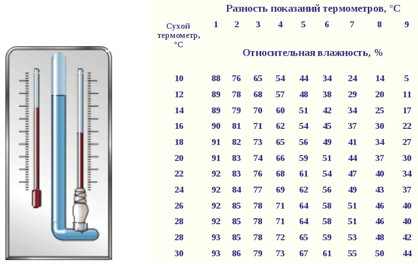 กระบวนการวัดความชื้นด้วยไซโครมิเตอร์นั้นง่ายมาก นอกจากค่านี้แล้วอุปกรณ์ยังวัดพารามิเตอร์อุณหภูมิอีกด้วย ตามกฎร่วมกับเครื่องวัดอุณหภูมิแอลกอฮอล์ที่ติดตั้งบนฐานพลาสติกผู้ผลิตจะวางตารางไซโครเมตริกของความชื้นในอากาศสัมพัทธ์ซึ่งช่วยให้สามารถอ่านค่าได้