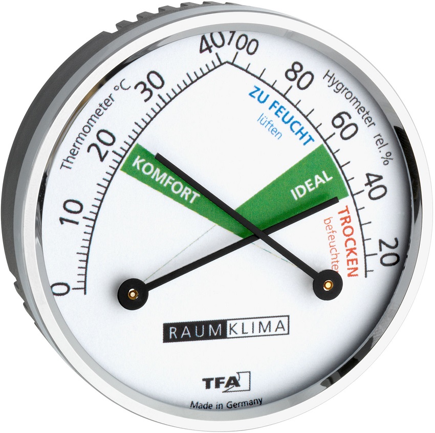 มาตรฐานความชื้นสำหรับคนที่มีสุขภาพดีถือว่าอยู่ที่ 40-60% ในการสร้างเงื่อนไขที่เหมาะสมที่สุดจะใช้อุปกรณ์พิเศษ สิ่งเหล่านี้อาจเป็นเครื่องลดความชื้นหรือเครื่องเพิ่มความชื้นขึ้นอยู่กับความต้องการของคุณ เครื่องวัดความชื้นในอากาศใช้เพื่อประสานการทำงานของอุปกรณ์เหล่านี้